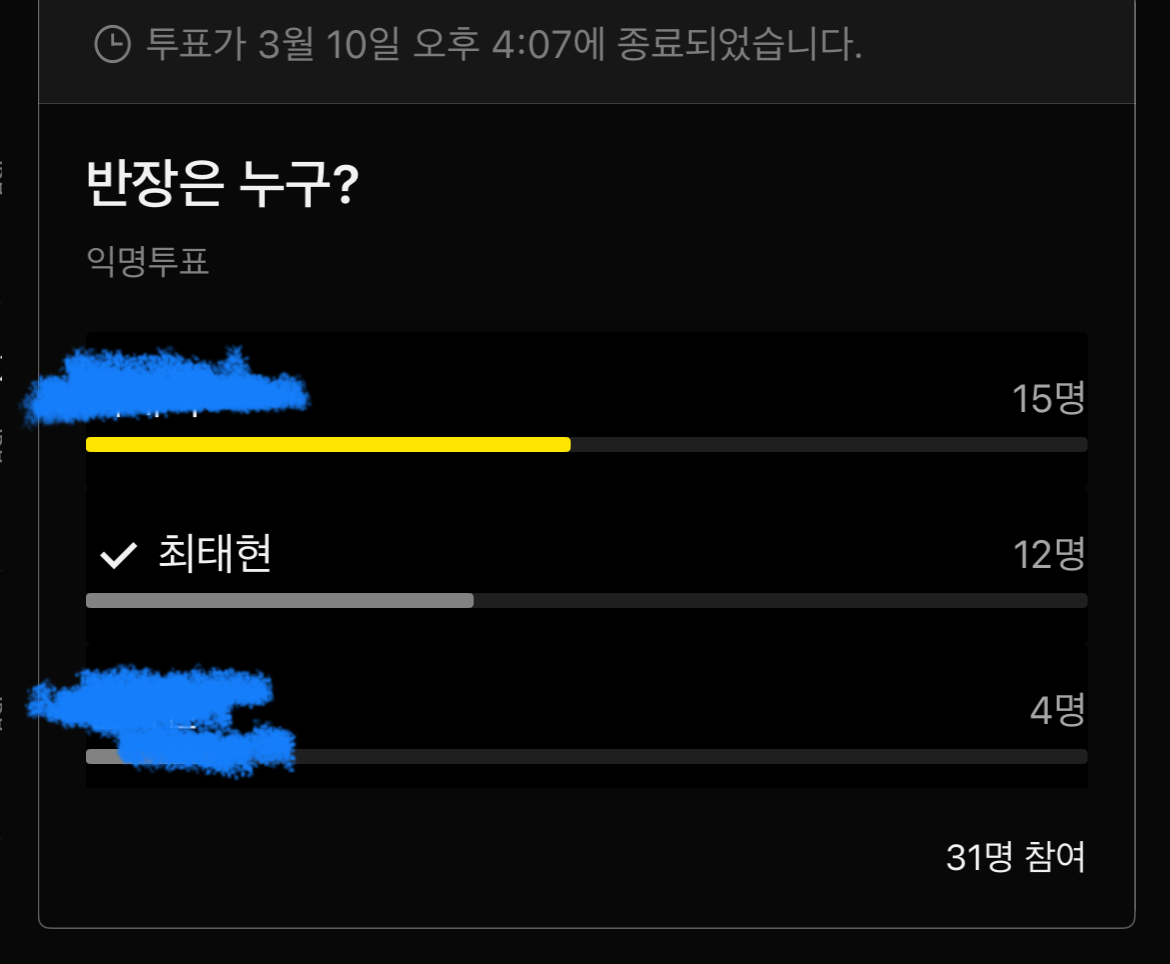 아쉽게도 3표차이로 떨어져 낙선했지만...!