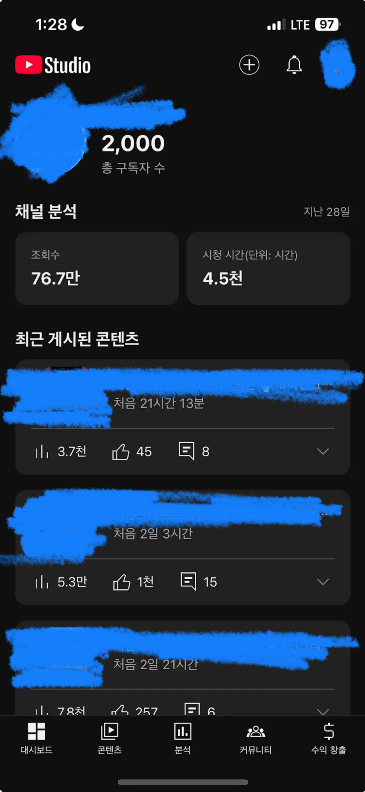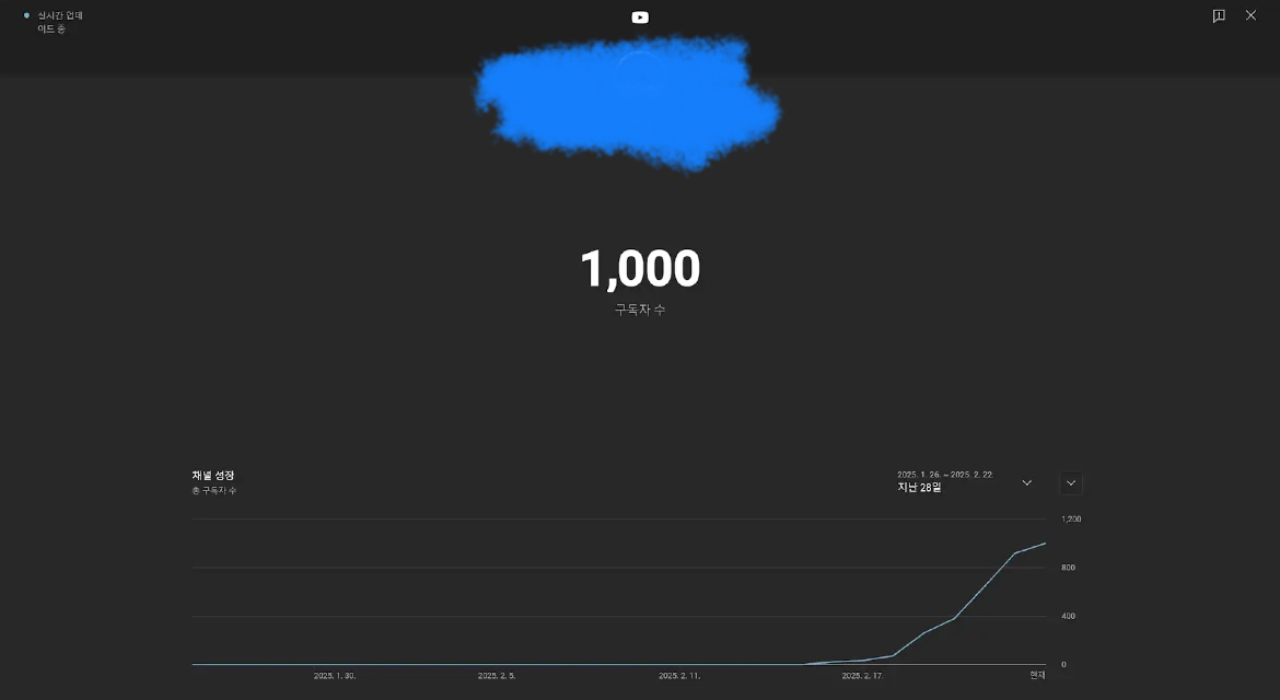 2월 마지막주에 유튜브 시작해서 한 달동안 구독자 천명을 찍었어요!!