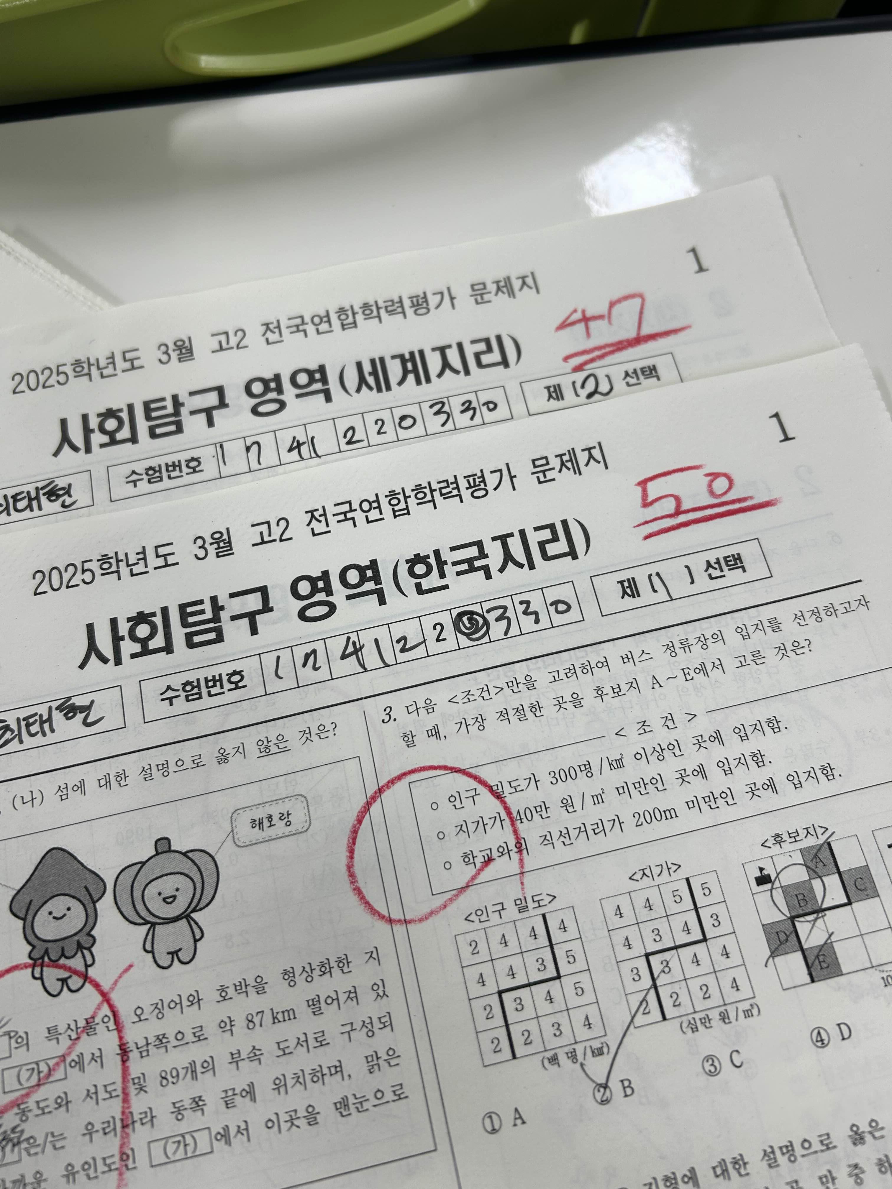 한국지리 예상컷 42점이였는데 만점받앗다!! ㅎㅅㅎ