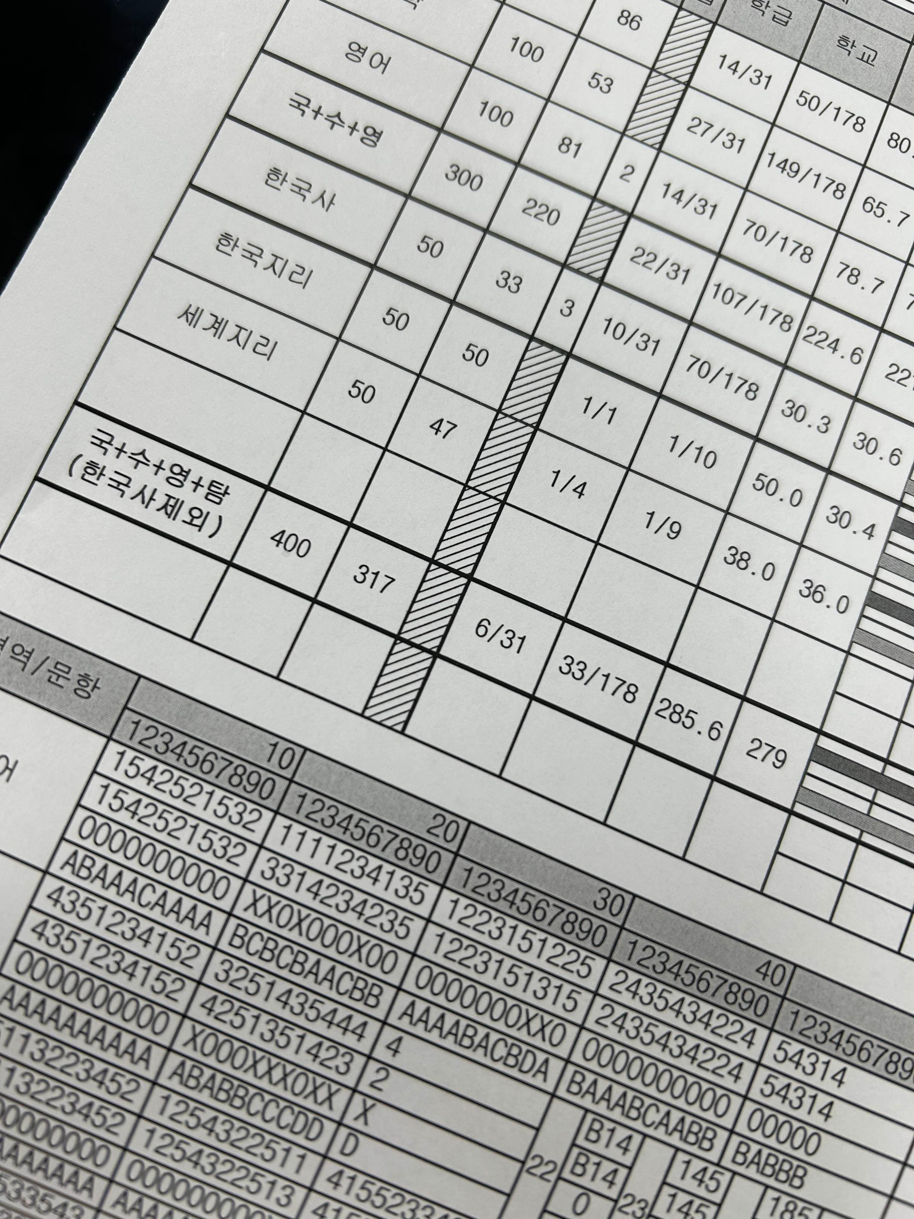 (울반애들 국어 너무잘해 ㅜ)수학 전교 150등 엄마 미안해우리학교는 특성화고라 직탐쳐서 사탐 의미없긴하다..